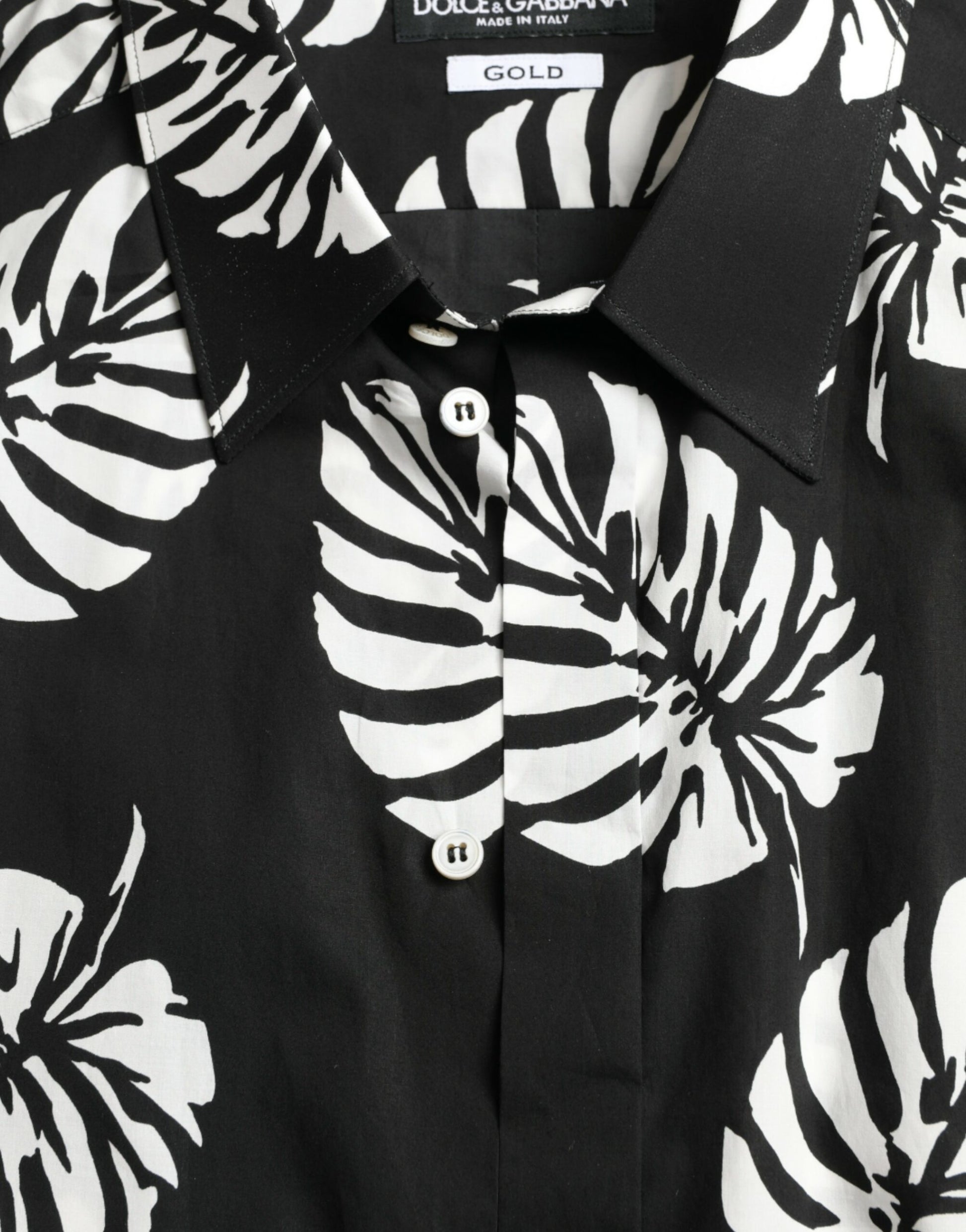 Dolce & Gabbana Black Leaf Cotton Men Formal GOLD Dress Shirt