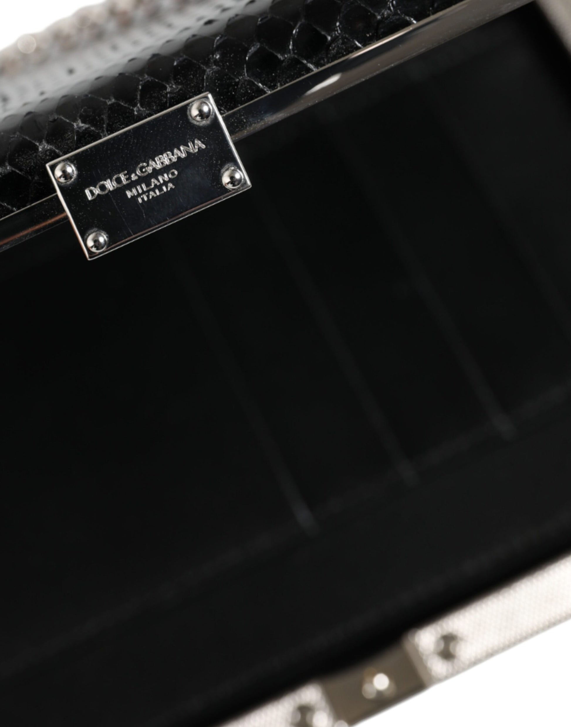 Dolce & Gabbana Black Leather Silver Frame Clutch Mini Crossbody Bag